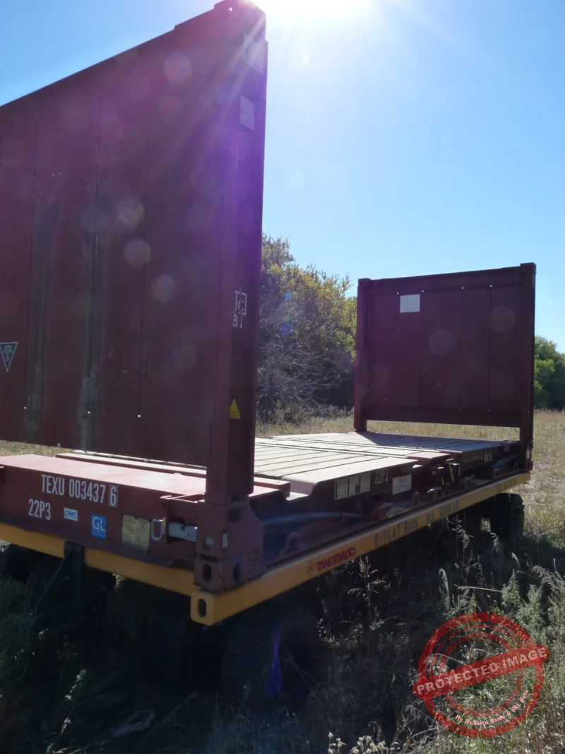 With its heavy-duty steel construction and open sides, this flat rack is engineered for strength, flexibility, and ease of loading—ideal for machinery, vehicles, construction equipment, large pipes, and more.Key Features:Exterior Dimensions: 20’ L x 8’ WOpen-side flat rack design for easy top or side loadingHeavy-duty steel frame built to handle extreme weights and oversized loadsOne-trip unit – minimal wear, like new conditionISO Certified – ready for intermodal transport or ground storage useFoldable end walls for compact stacking/storage when not in usePerfect for: industrial sites, marine transport, construction, and logistics