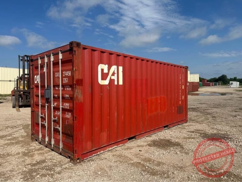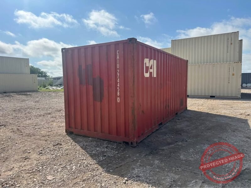 • 20ft Used Shipping Container – RED with Custom Lock Box