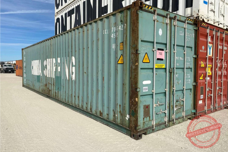 The 40′ HC Wind and Watertight Storage Containers are generally shipped from the shipping yard directly to the customer to save the customer on transportation cost. Wind & Watertight Units have made many trips across the ocean and will show signs of previous use including rust, dents, dings, floor scratches or scrapes, patches, and possibly an odor. Due to being pulled straight out of the shipping yard, color will vary on Wind & Watertight Units depending on the original factory paint color.